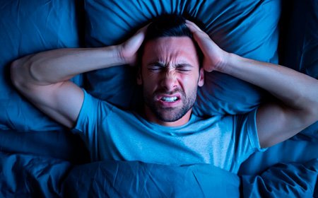 Мужчина лежит на кровати и держится за голову
